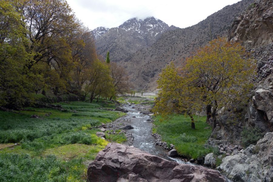 After breakfast in Marrakech, drive to Imlil to meet your guide and mule team. Begin trekking toward Tacheddirt Valley, ascending to Tizi N’Tamatert (2,279 m) for spectacular views over the High Atlas, Imlil, and Imnane Valleys. Descend to Ouanesekra Village (2,200 m), then continue 30 minutes to Tacheddirt, where you can camp by the river or stay in a traditional Berber gite. Trek: 4–5 hours