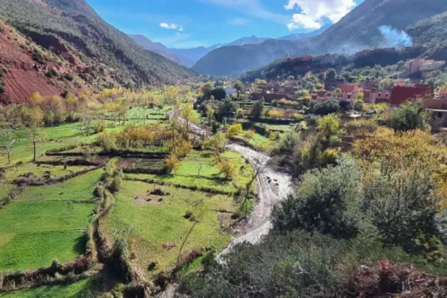 Meet your driver or guide at 9 a.m. at your accommodation to commence an explorative day trip to Imlil and the High Atlas Mountains. After picturesque stops for photos, journey through the lush Atlas greenery until you reach the panoramic view of the village near Tahnnaout. Pause for breathtaking photos before exploring hidden Berber villages on foot.
