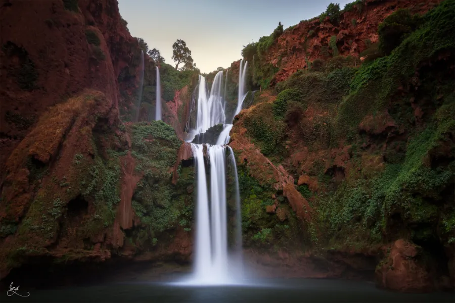 Embark on an extraordinary expedition to the Ouzoud Falls, a natural masterpiece that reigns supreme as the most magnificent and awe-inspiring waterfall in Morocco and North Africa. Nestled near the village of Tanaghmeilt in the Atlas Mountains, this majestic cascade, standing tall at 360 ft (110 m), unfolds its splendor just 93 miles (150 km) northeast of the vibrant city of Marrakech.